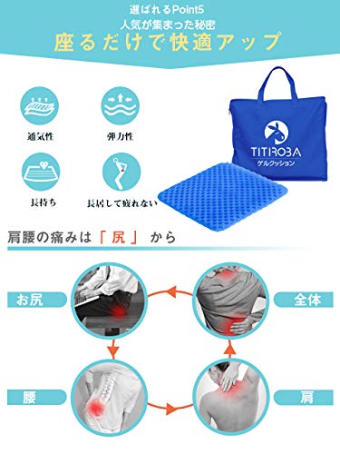 長時間座っていると、お尻が固まってしまうので、ゲル素材のクッションをお尻に敷いています。